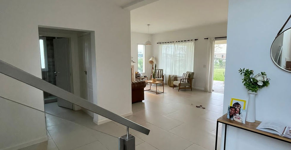 Se accede a la PA por una moderna escalera de madera y barandas de vidrio y acero. Allí nos encontramos un amplio Hall de distribución con salida a un balcón al frente. La PA cuenta con 4 dormitorios: el dormitorio principal con vestidor y baño en suite con mesadas de marmol , doble bacha, hidromasaje y ducha; la suite junior, y otros dos dormitorios que comparten un baño completo. Por los dormitorios se accede a una amplia y soleada terraza con vista al jardín y la laguna.